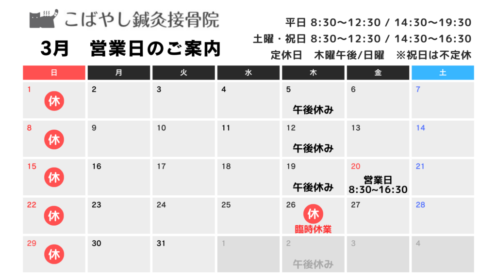 3月の営業日