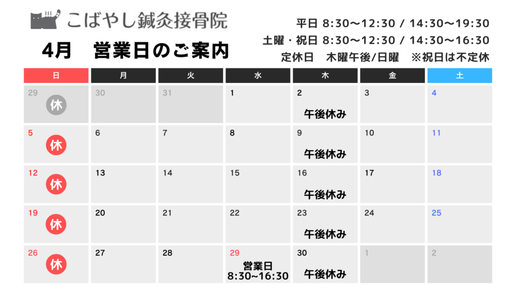 4/29(水)昭和の日は8:30~16:30まで営業します。